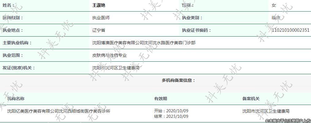 主要執(zhí)業(yè)機(jī)構(gòu):沈陽(yáng)博澳醫(yī)療美容有限公司沈河沈水路醫(yī)療美容門(mén)診部