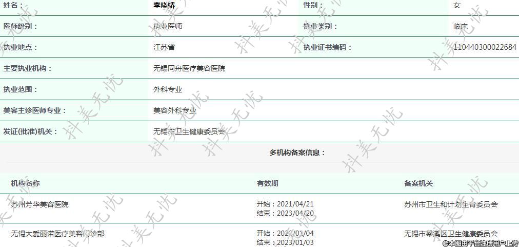 主要執(zhí)業(yè)機(jī)構(gòu):無(wú)錫同舟醫(yī)療美容醫(yī)院