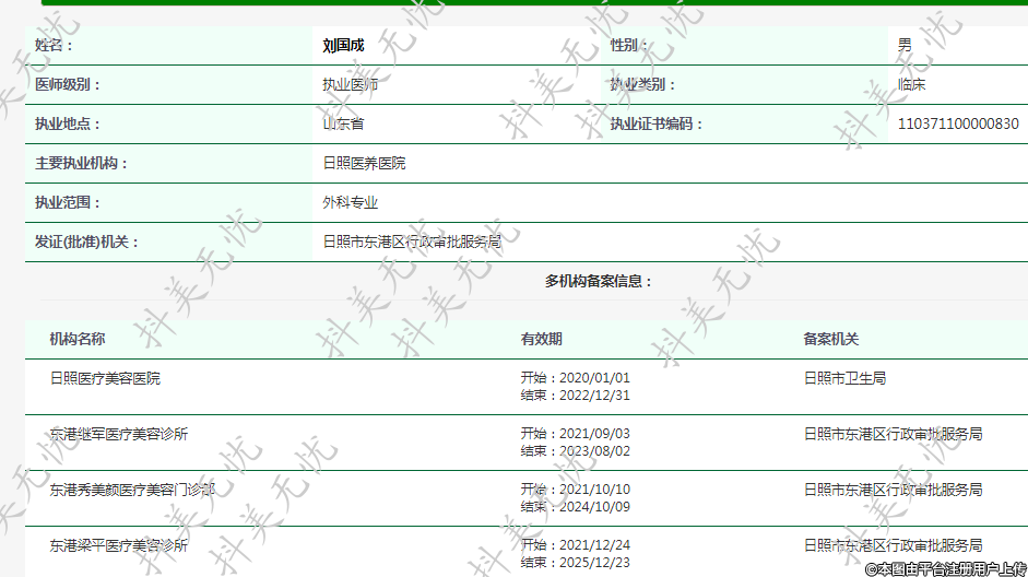 就職于日照醫(yī)療美容醫(yī)院