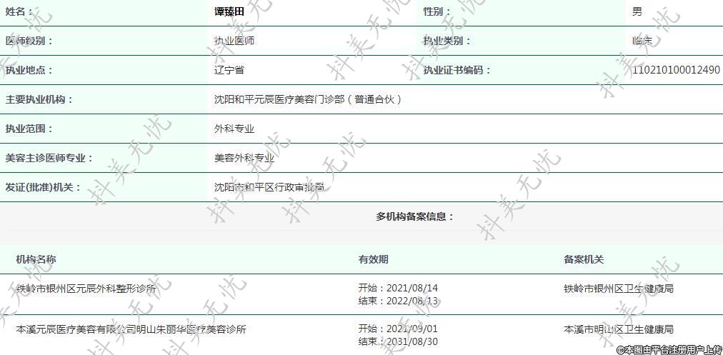 主要執(zhí)業(yè)機(jī)構(gòu):沈陽和平元辰醫(yī)療美容門診部(普通合伙)