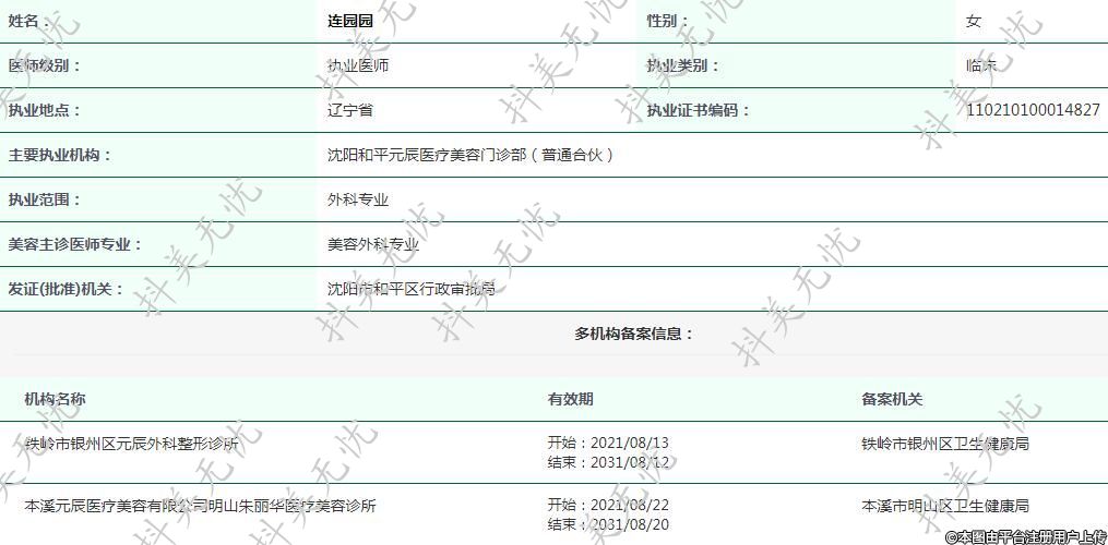 主要執(zhí)業(yè)機構:沈陽和平元辰醫(yī)療美容門診部(普通合伙)