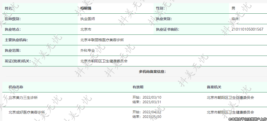 主要執(zhí)業(yè)機(jī)構(gòu):北京豐聯(lián)麗格醫(yī)療美容診所