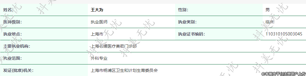 主要執(zhí)業(yè)機(jī)構(gòu):上海名媛醫(yī)療美容門診部