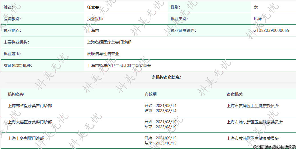 主要執(zhí)業(yè)機(jī)構(gòu):上海名媛醫(yī)療美容門診部