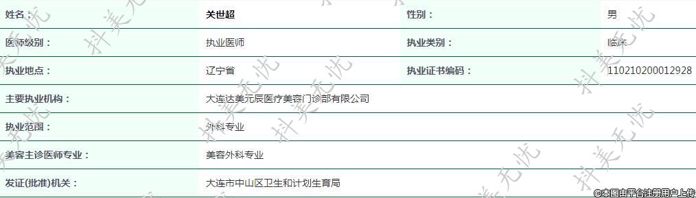 主要執(zhí)業(yè)機構:大連達美元辰醫(yī)療美容門診部有限公司