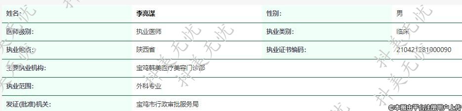 主要執(zhí)業(yè)機構(gòu):寶雞韓美醫(yī)療美容門診部