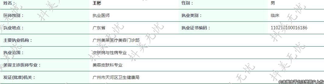 主要執(zhí)業(yè)機構(gòu):廣州美萊醫(yī)療美容門診部