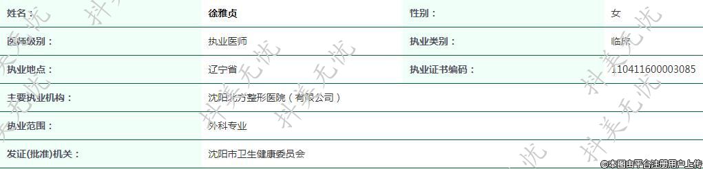 主要執(zhí)業(yè)機(jī)構(gòu):沈陽北方整形醫(yī)院(有限公司)