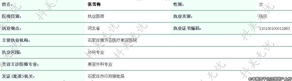 石家莊雅芳亞執(zhí)業(yè)醫(yī)師