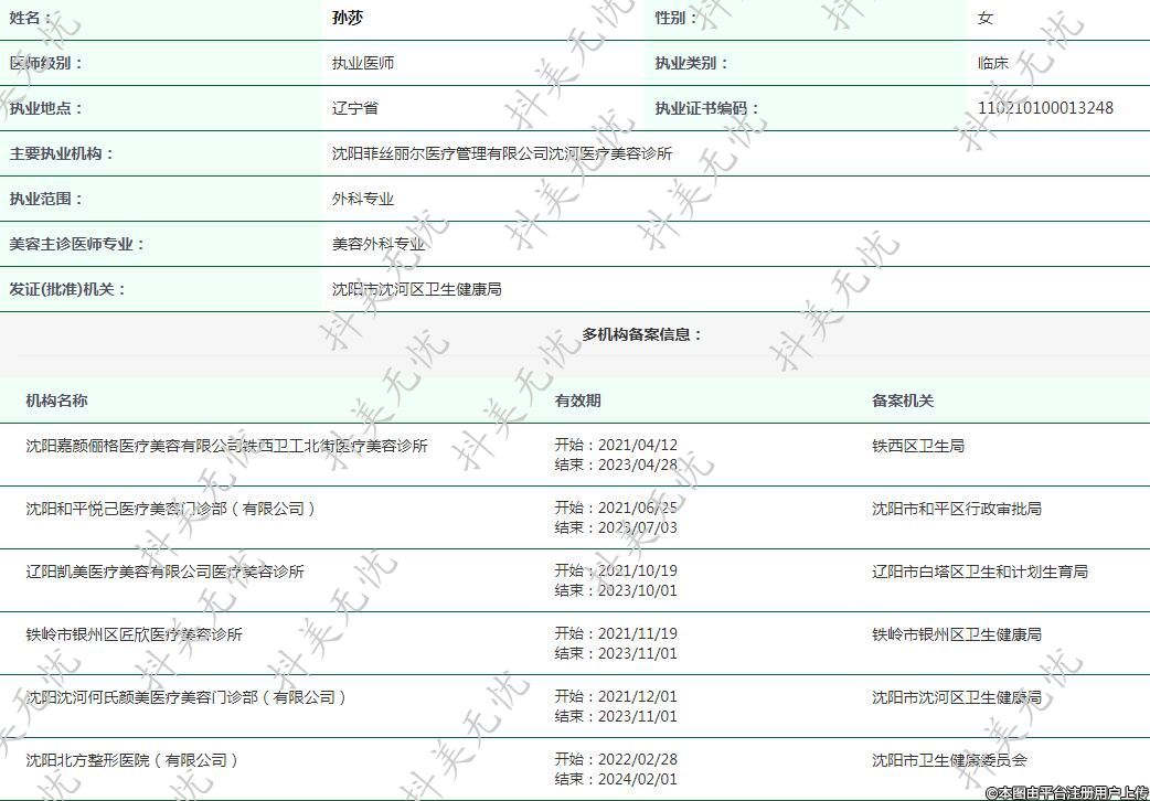 主要執(zhí)業(yè)機構(gòu):沈陽菲絲麗爾醫(yī)療管理有限公司沈河醫(yī)療美容診所