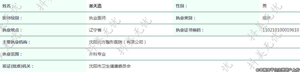 主要執(zhí)業(yè)機構:沈陽北方整形醫(yī)院(有限公司)