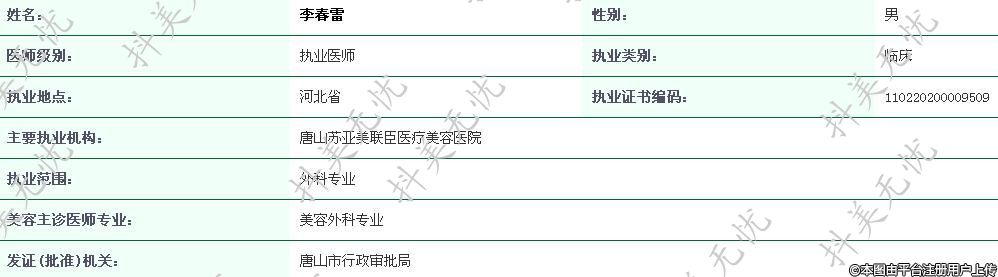 唐山蘇亞美聯(lián)臣執(zhí)業(yè)醫(yī)師