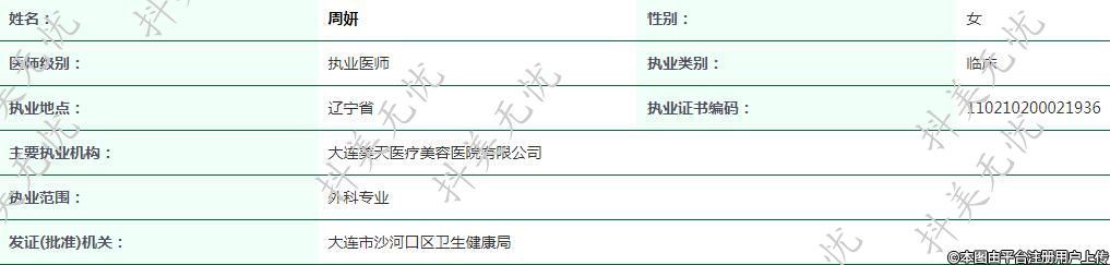 主要執(zhí)業(yè)機(jī)構(gòu):大連美天醫(yī)療美容醫(yī)院有限公司