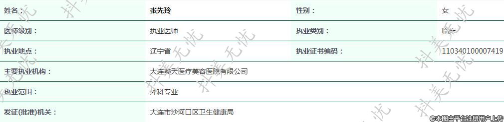 主要執(zhí)業(yè)機構:大連美天醫(yī)療美容醫(yī)院有限公司