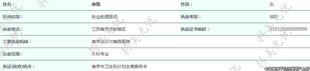 主要執(zhí)業(yè)機(jī)構(gòu):南京美貝爾美容醫(yī)院