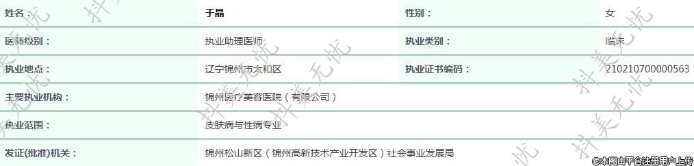 主要執(zhí)業(yè)機(jī)構(gòu):錦州醫(yī)療美容醫(yī)院(有限公司)