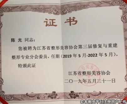 江蘇省整形美容協(xié)會第三屆修復(fù)與重建整形專業(yè)分會委員,任期(2019年5月-2022年5月)
