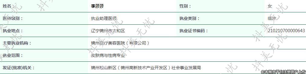 主要執(zhí)業(yè)機(jī)構(gòu):錦州醫(yī)療美容醫(yī)院(有限公司)
