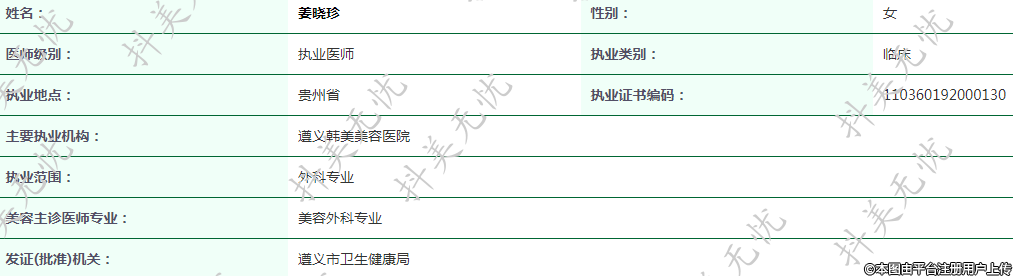 主要執(zhí)業(yè)機(jī)構(gòu):遵義韓美美容醫(yī)院