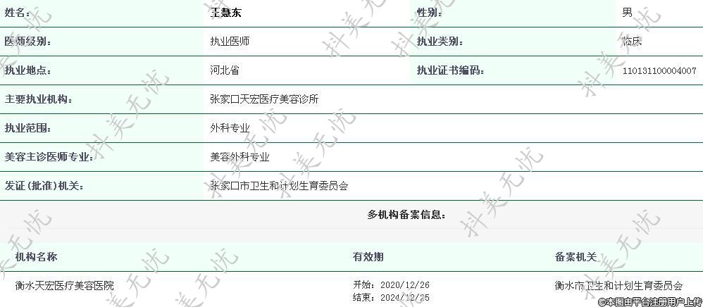主要執(zhí)業(yè)機(jī)構(gòu):張家口天宏醫(yī)療美容診所