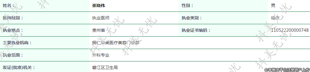 主要執(zhí)業(yè)機(jī)構(gòu):銅仁華美醫(yī)療美容門診部