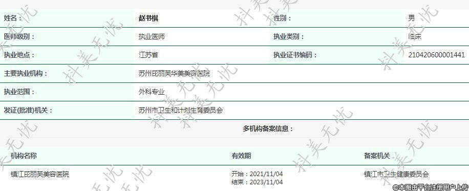 主要執(zhí)業(yè)機構:蘇州芘麗芙華美美容醫(yī)院