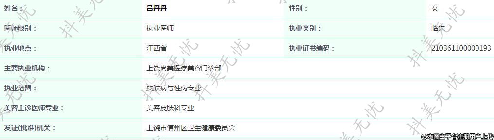 主要執(zhí)業(yè)機構:上饒尚美醫(yī)療美容門診部