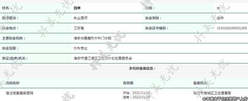 主要執(zhí)業(yè)機(jī)構(gòu):淮安華美整形外科門診部