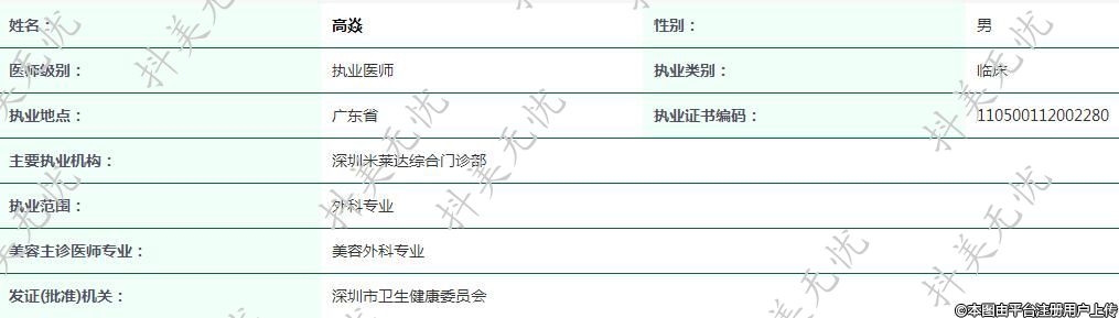 主要執(zhí)業(yè)機(jī)構(gòu):深圳米萊達(dá)綜合門診部
