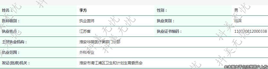 主要執(zhí)業(yè)機(jī)構(gòu):淮安華薇醫(yī)療美容門診部