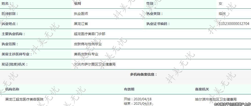 黑龍江超龍醫(yī)療美容執(zhí)業(yè)醫(yī)師