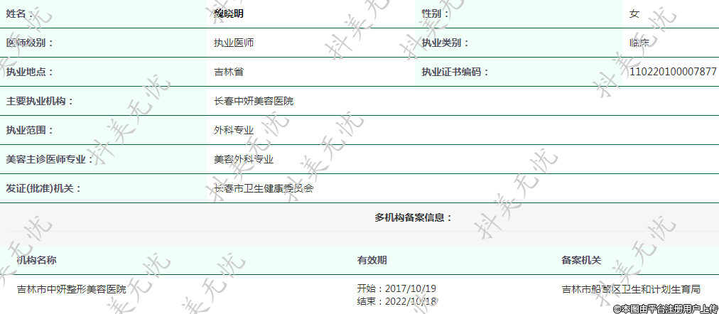 現(xiàn)任長(zhǎng)春中妍醫(yī)療美容執(zhí)業(yè)醫(yī)師