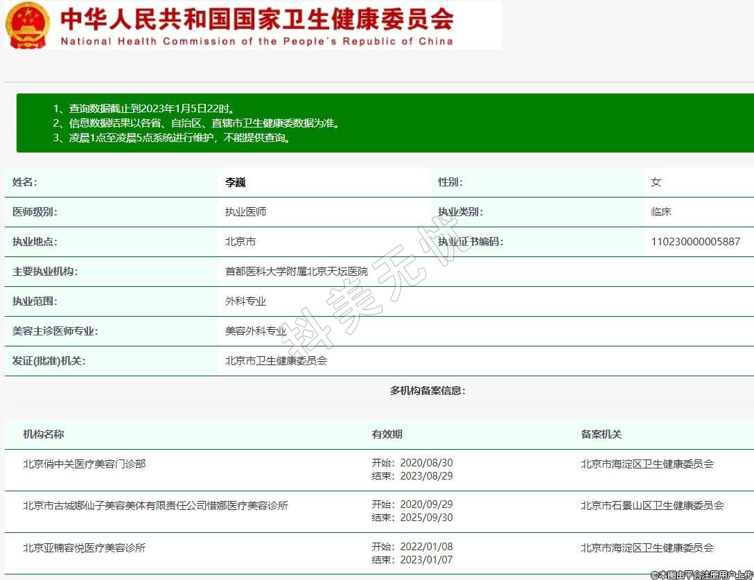 機(jī)構(gòu)名稱:北京市古城娜仙子美容美體有限責(zé)任公司惜娜醫(yī)療美容診所