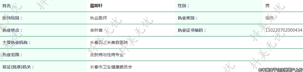 主要執(zhí)業(yè)機(jī)構(gòu):長春西之米美容醫(yī)院