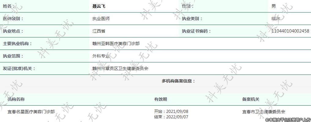 主要執(zhí)業(yè)機構(gòu):贛州亞韓醫(yī)療美容門診部
