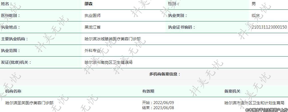 主要執(zhí)業(yè)機(jī)構(gòu):哈爾濱冰城臻美醫(yī)療美容門診部