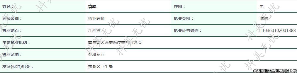 主要執(zhí)業(yè)機構(gòu):南昌南大醫(yī)美醫(yī)療美容門診部