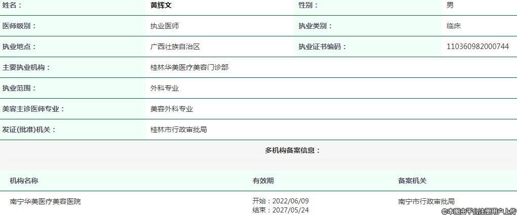 主要執(zhí)業(yè)機(jī)構(gòu):桂林華美醫(yī)療美容門診部