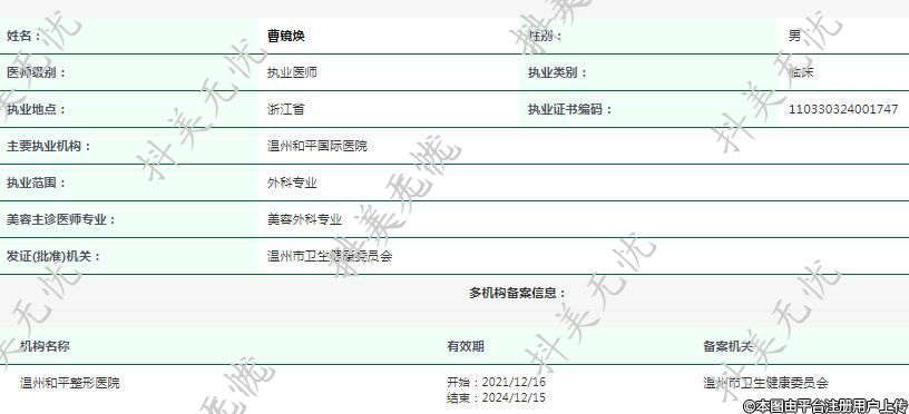 主要執(zhí)業(yè)機構:溫州和平國際醫(yī)院