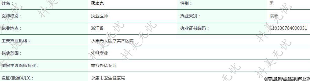主要執(zhí)業(yè)機構(gòu):永康光大醫(yī)療美容醫(yī)院
