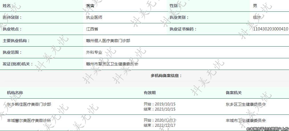 主要執(zhí)業(yè)機構(gòu):贛州儷人醫(yī)療美容門診部