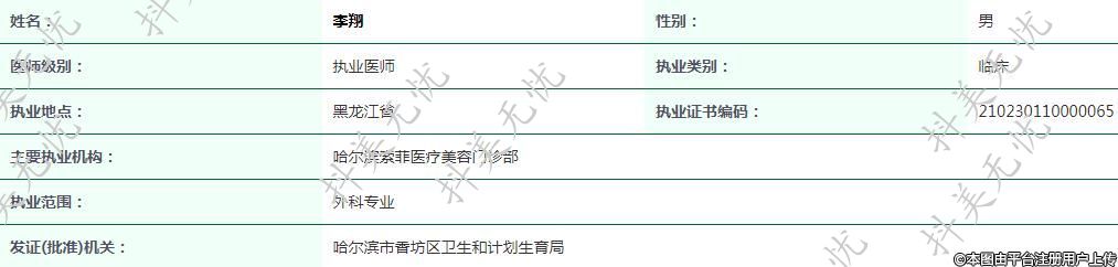 主要執(zhí)業(yè)機(jī)構(gòu):哈爾濱索菲醫(yī)療美容門(mén)診部