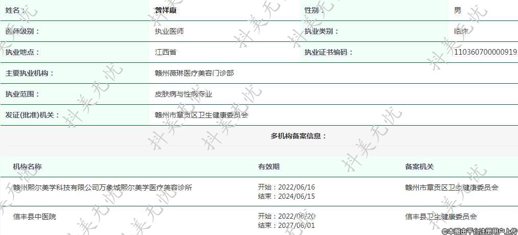 主要執(zhí)業(yè)機(jī)構(gòu):贛州薇琳醫(yī)療美容門診部