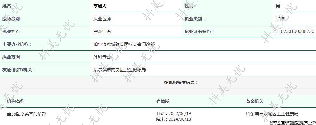 主要執(zhí)業(yè)機構:哈爾濱冰城臻美醫(yī)療美容門診部
