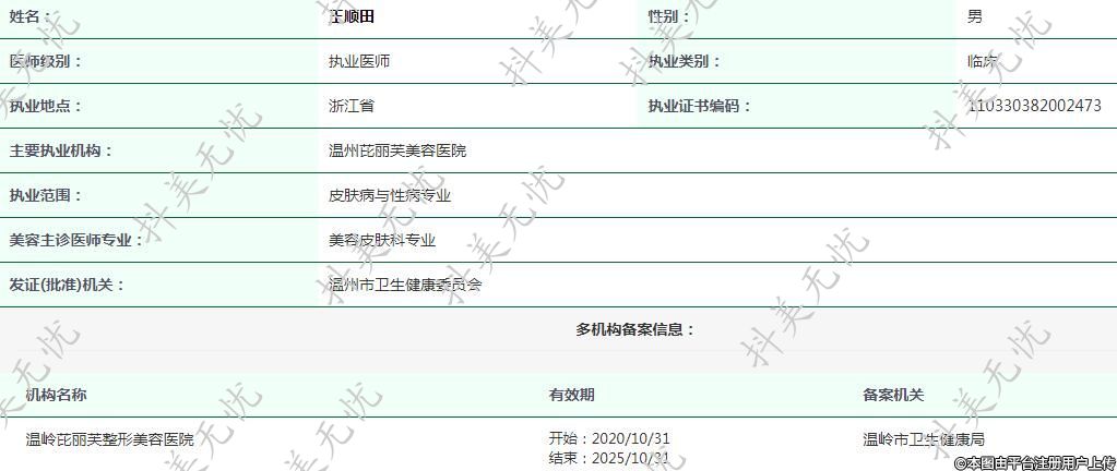 溫州芘麗芙醫(yī)療美容執(zhí)業(yè)醫(yī)師