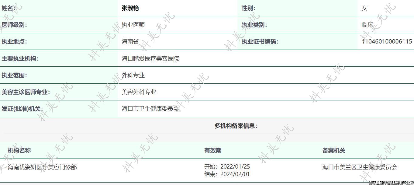 主要執(zhí)業(yè)機(jī)構(gòu):??邬i愛(ài)醫(yī)療美容醫(yī)院
