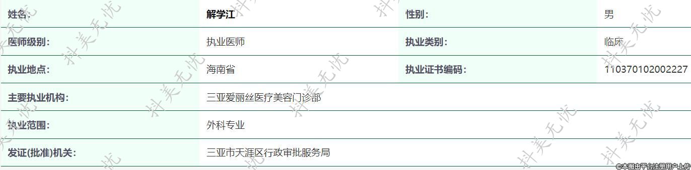 主要執(zhí)業(yè)機(jī)構(gòu):三亞愛(ài)麗絲醫(yī)療美容門診部