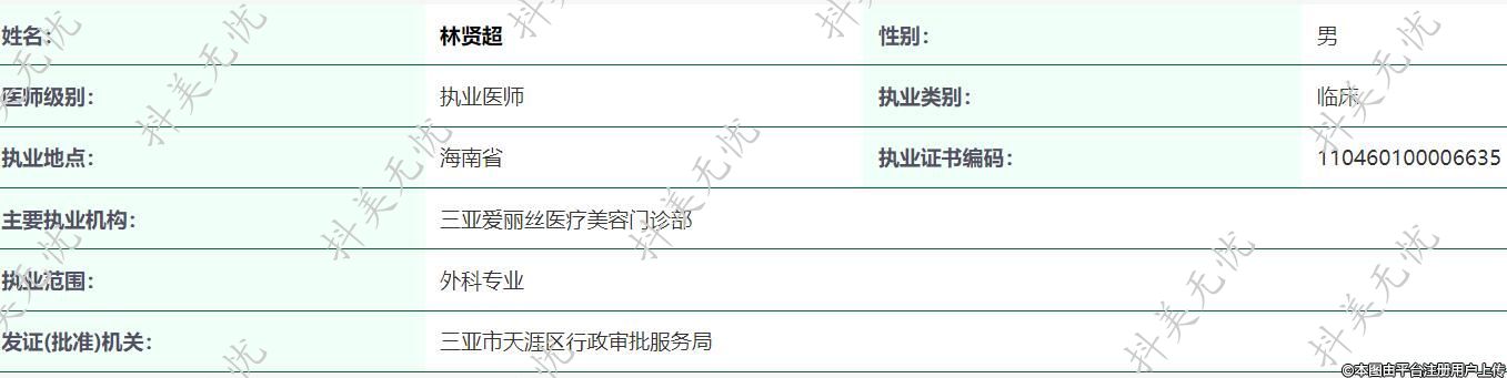 主要執(zhí)業(yè)機構:三亞愛麗絲醫(yī)療美容門診部