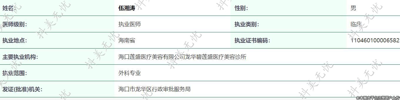 主要執(zhí)業(yè)機構(gòu):??谏徥⑨t(yī)療美容有限公司龍華碧蓮盛醫(yī)療美容診所
