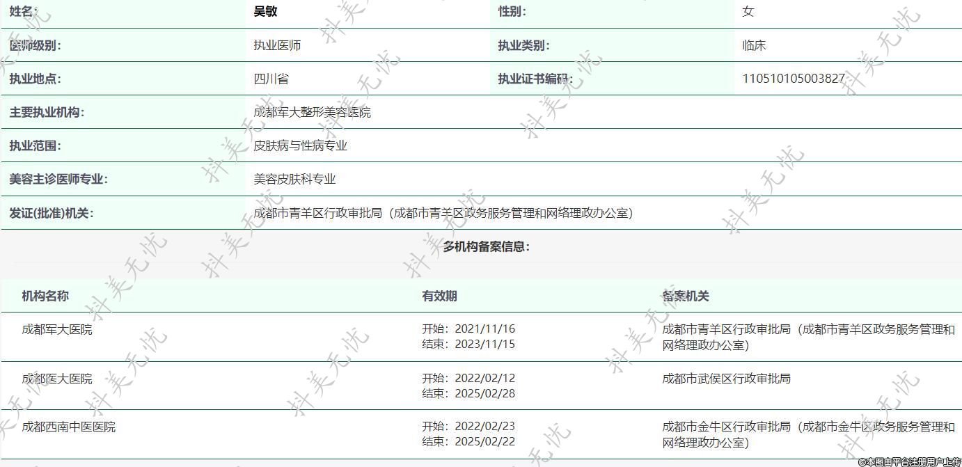 主要執(zhí)業(yè)機(jī)構(gòu):成都軍大整形美容醫(yī)院